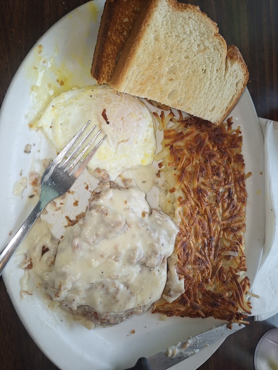 1st time eating here 6 months ago. Breakfast was amazing. My wife had the Oysters and eggs. Six fried Oysters served with eggs, hashbrowns, and a biscuit, delicious. I ordered The country fried steak and eggs. I had it served with home fries and Sour dough toast. If you like onions, red and green peppers with your potatoes, you are going to love their home fries. You better come hungry, the portion sizes are large. Eat some and take some home. We had very good table service. I came back to try the Oyster dinner. I was not disappointed. I have returned again for their Oyster lunch, 8 oysters and a side, o had the dinner salad. My waitress was Meg S, she was a fantastic waitress. This was a positive dining experience.